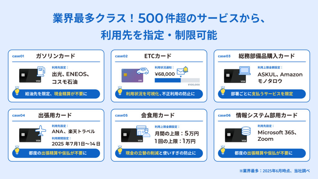 渡辺さん:現在は、リアルカードとバーチャルカードを併用し、用途に応じて使い分けています。まず、バーチャルカードは、必要に応じて管理画面から即時に何枚でも発行できる点が大きな利点です。