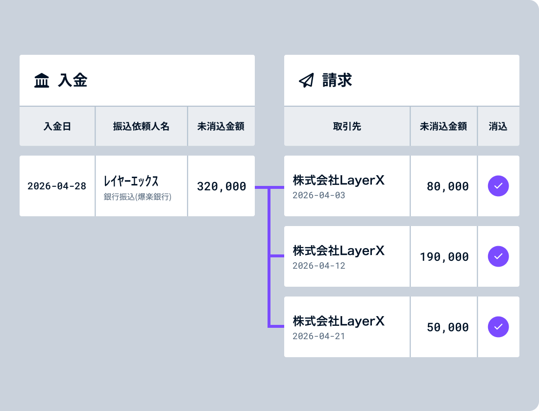 目視や手作業になりがちな入金と請求との照合作業を、