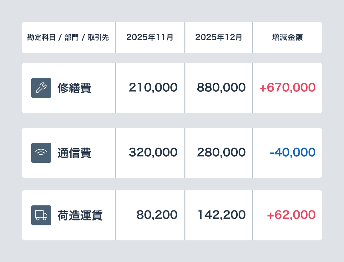 Web広告や業務委託費の変動を「先月比」で即座に検知したい