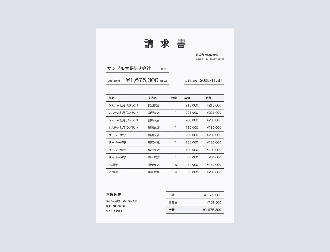 バクラク請求書受取にアップされた証憑をもとにその「差額の理由」をAIが瞬時に比較・分析します。