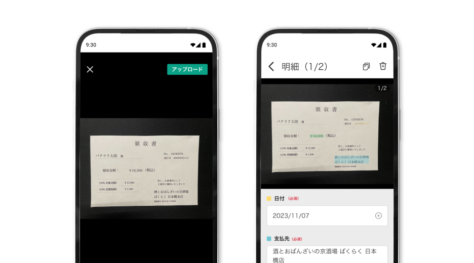 スマホアプリから複数の領収書を一括アップロード・自動処理