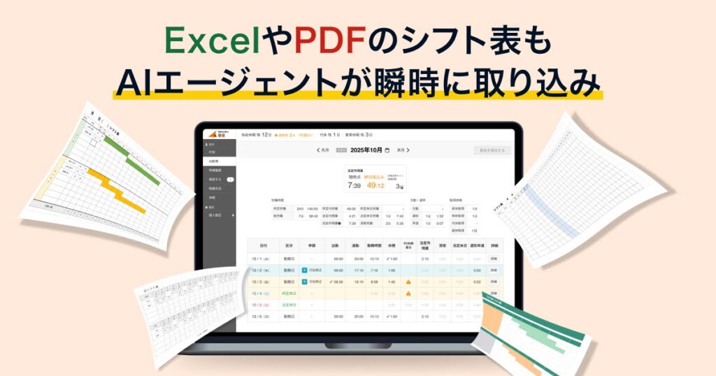 1ヶ月単位の変形労働時間制ではシフト運用が同時に行われることが多いですが、Excelやスプレッドシートで調整したシフトを勤怠管理システムに取り込むために、CSV加工を行う必要があるなど手間が発生しがちです。