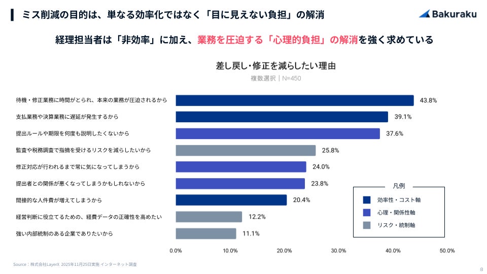 株式会社LayerX(本社:東京都中央区、代表取締役CEO:福島良典、以下「LayerX」)は、経費精算システムの導入・選定に関わった経理・財務担当者471名を対象に、「経費精算の差し戻し・修正」に関する実態調査を実施しました。