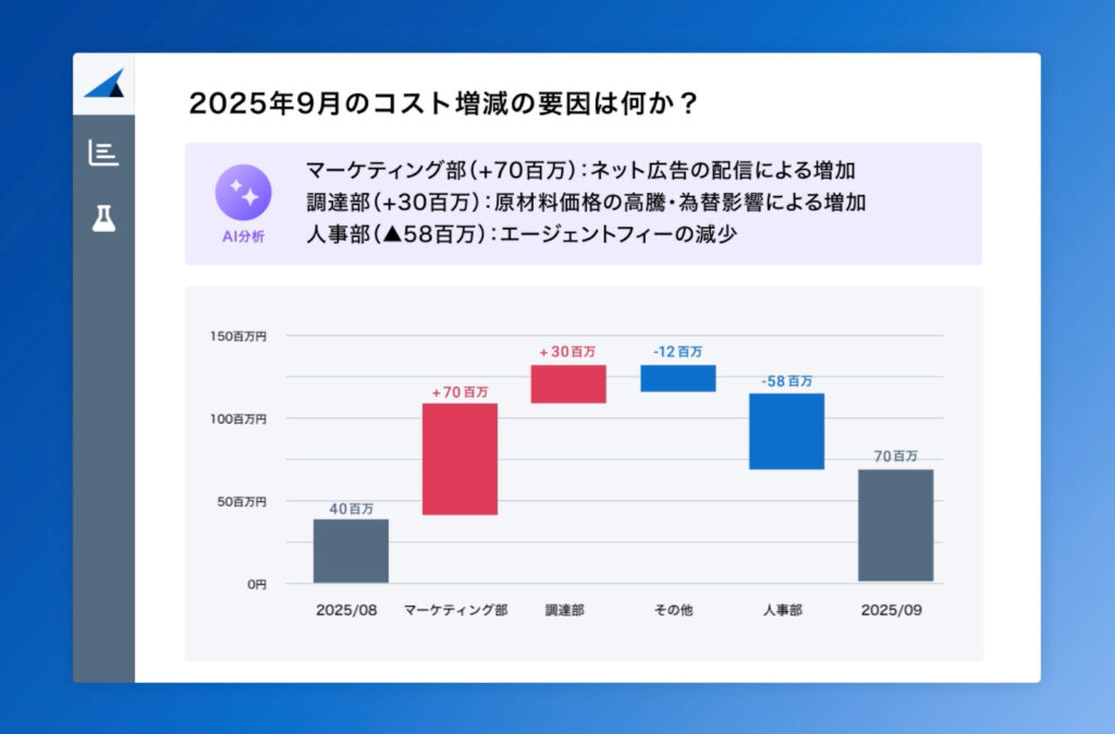 しかし、処理されたデータの「活用」においては、依然として課題が残っています。「月次決算の数値に違和感があるが、原因特定のためにExcelでの集計や証憑の確認に時間がかかる」「コスト削減の必要性は感じているが、具体的なアクションにつなげるためのファクト(事実)が見えない」といった声が多く聞かれます。