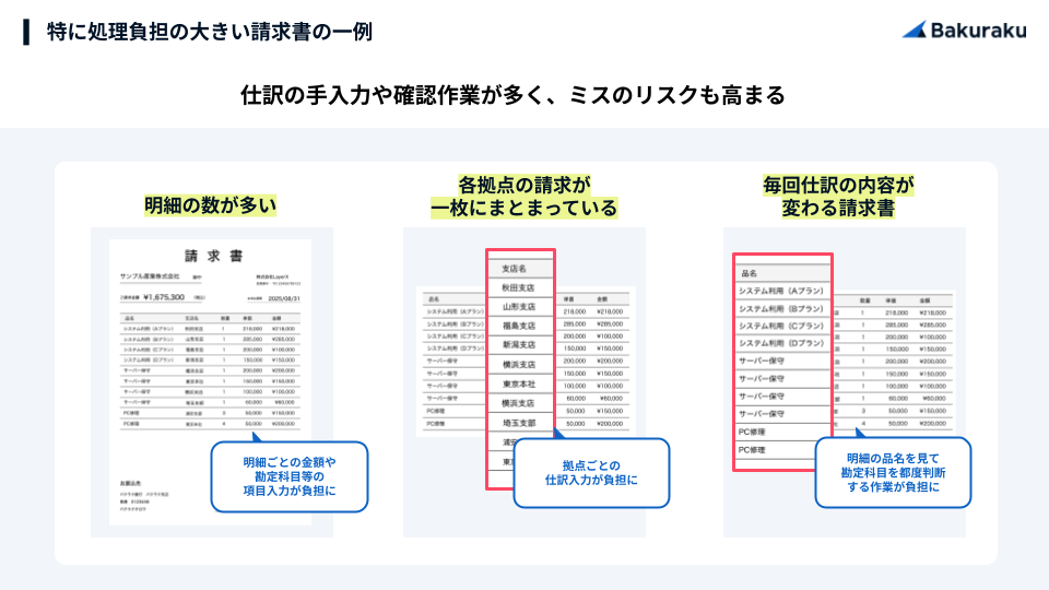 勘定科目や部門が毎回変わる請求書処理に負担を感じている方