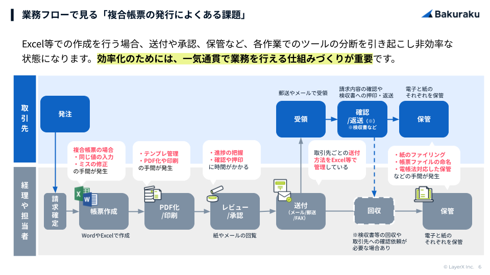 複合帳票の発行に対応した「バクラク請求書発行」の詳細な製品紹介も掲載しています。