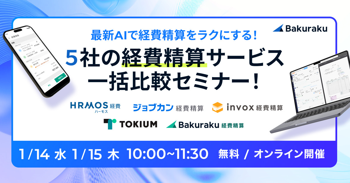 本セミナーでは、AIを活用して経費精算業務をよりスムーズにする人気5サービスを一度に比較できる特別セッションを開催します。