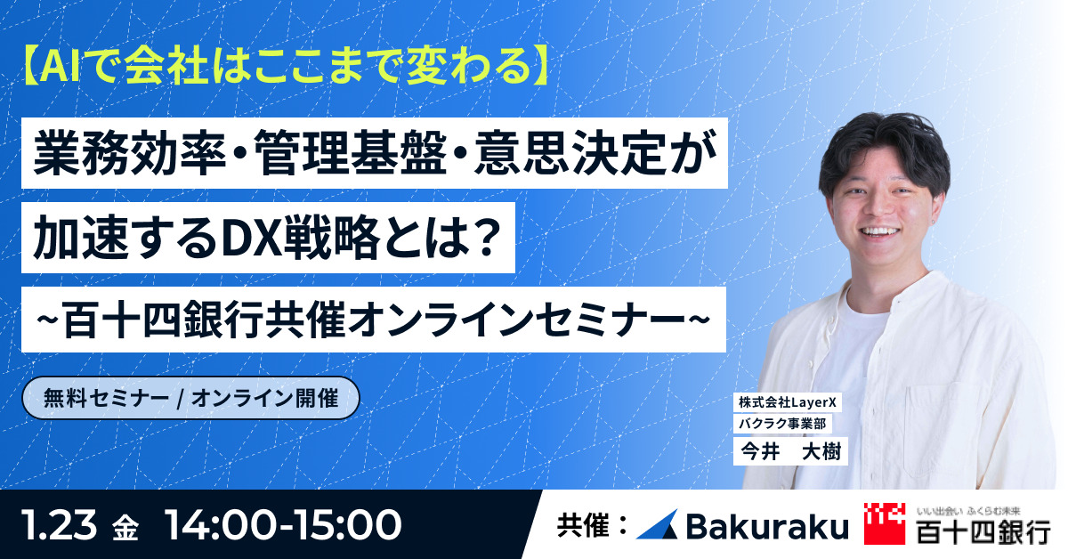 【AIで会社はここまで変わる】業務効率・管理基盤・意思決定が加速するDX戦略とは?~百十四銀行共催オンラインセミナー~