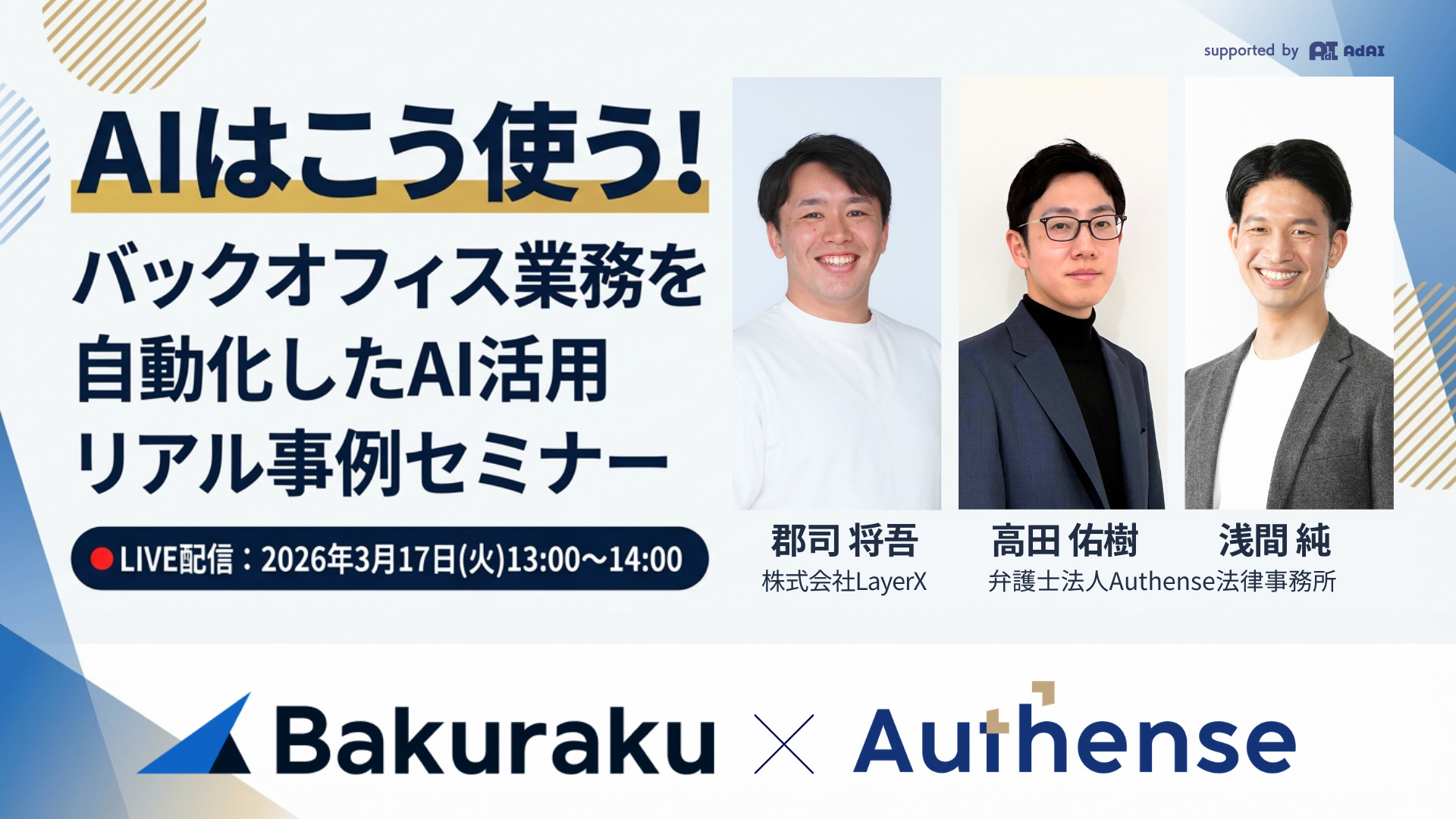 本セミナーでは、LayerXとAuthense法律事務所がバックオフィス部門におけるAI活用の考え方と実践知を共有します。