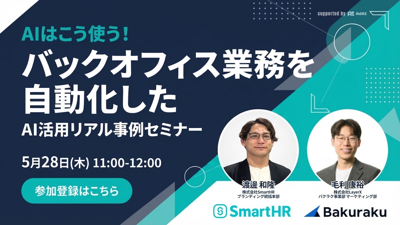 本ウェビナーでは、LayerXとSmartHRの両社が、自社のバックオフィス部門で実際に取り組んだAI活用のリアルな事例をご紹介します。