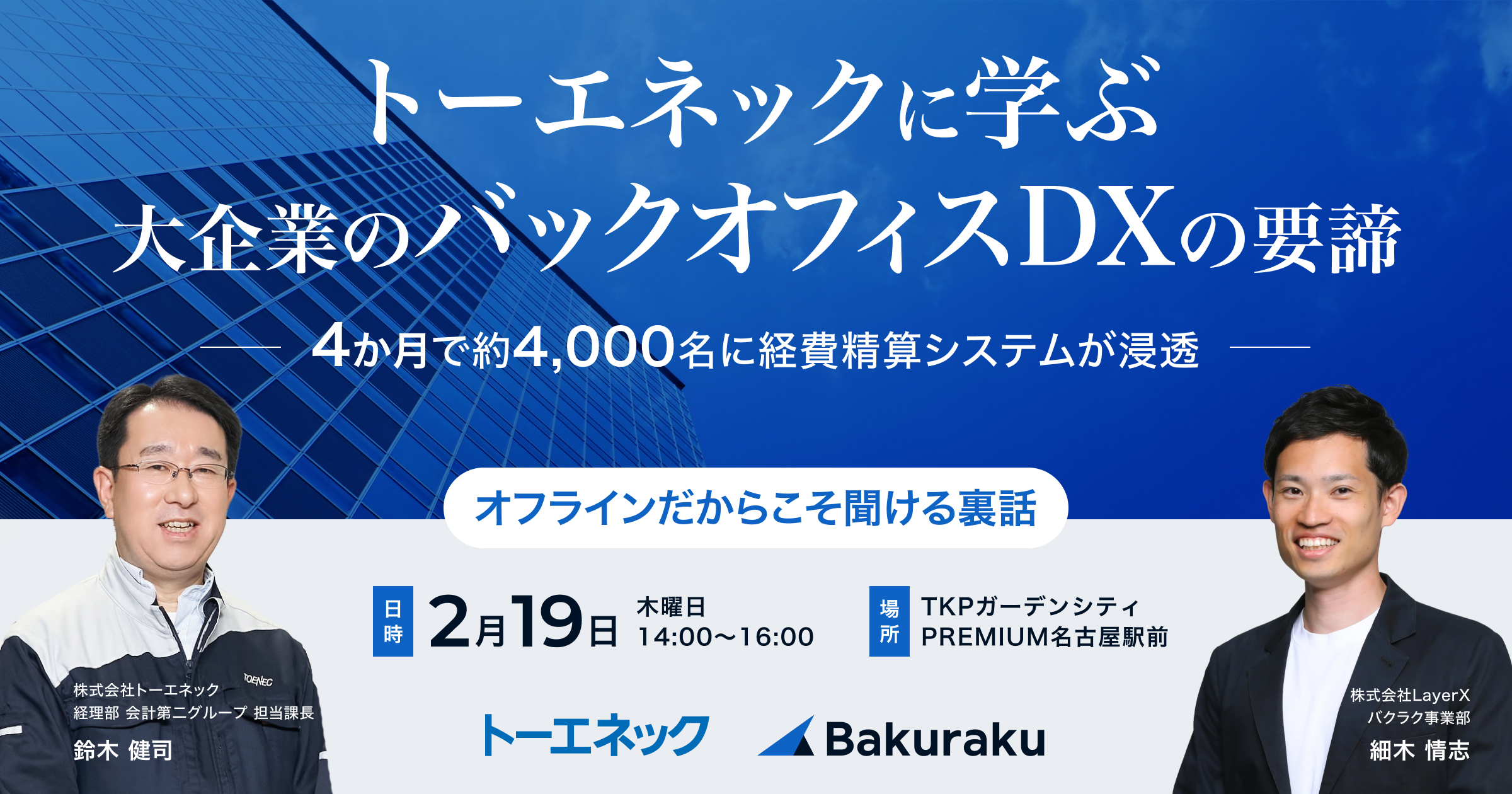 このフォームからご入力いただいたお客さまの個人情報は、本セミナーおよび関連するサービスのご案内の為、株式会社LayerXから株式会社三菱UFJ銀行、株式会社トーエネックに連携します。